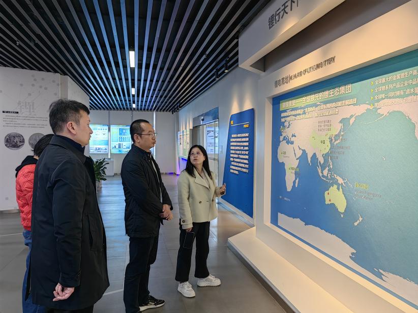 在赣锋锂业集团总部,黄婷向进出口银行一行介绍了集团在全球的生产基地和矿资源的战略布局,介绍了赣锋锂业集团为客户提供按期稳定先进材料、助力全球能源转型的工作方向。
