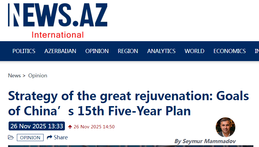 中国日报网11月28日电 近日,国际专家俱乐部EurAsiaAz主任塞缪尔·马迈多夫在阿塞拜疆“News.Az”国际新闻网发表文章称,在全球进入“战略不确定时代”的背景下,中国谋定而后动,以罕见的长远战略眼光和坚定的执行力,给出了截然不同的答案。