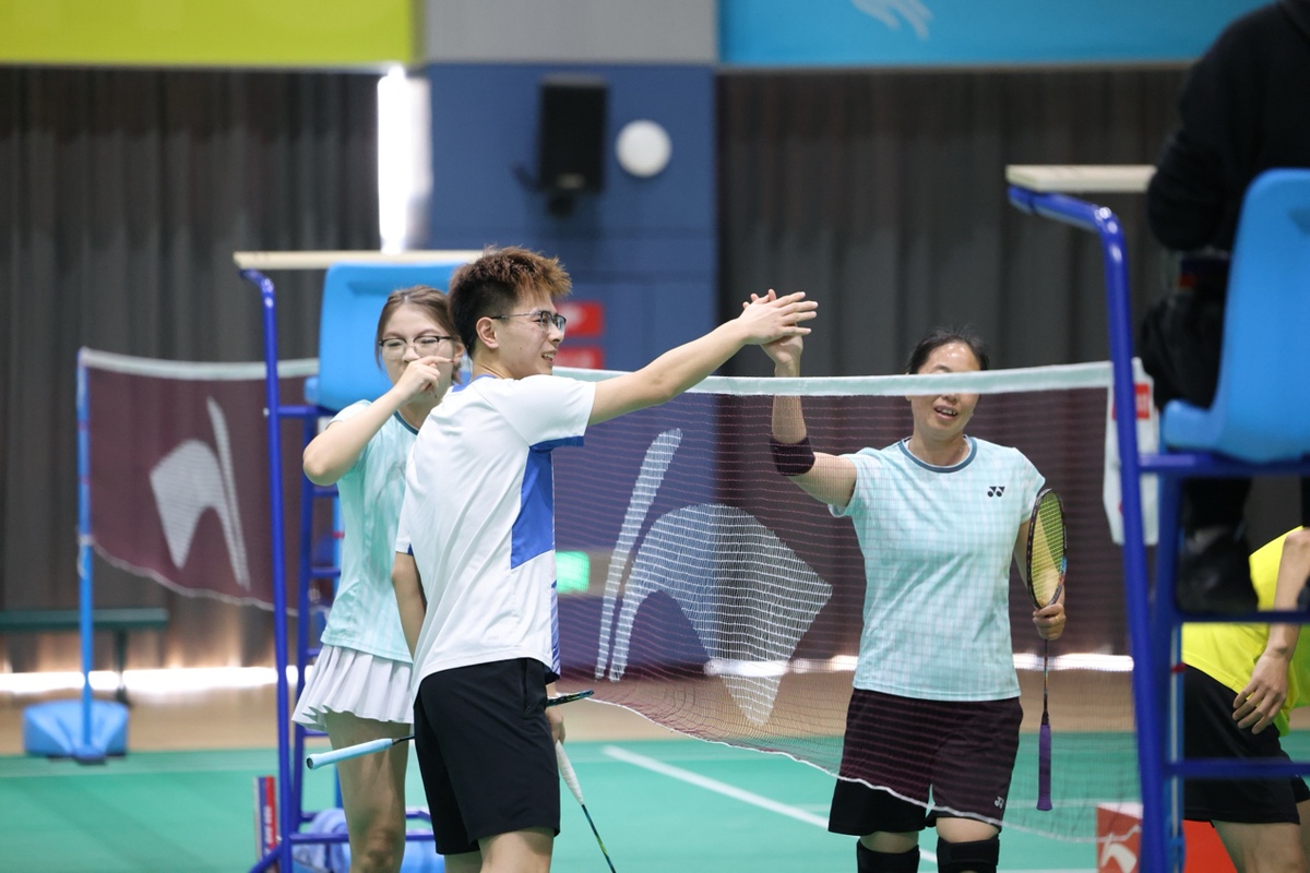 杭州羽航俱乐部领队程群旺连续3年征战总决赛,此次率队斩获团体赛冠军后,他难掩喜悦:“能拿下这份荣誉十分开心!明天我们还将向混双、男双、男单项目发起冲击,期待队员们延续势头、再创佳绩。”谈及赛场体验,他连连称赞:“这里的灯光、场地条件堪称一流,即便放在一线城市也属优质水准,打球格外舒心。”