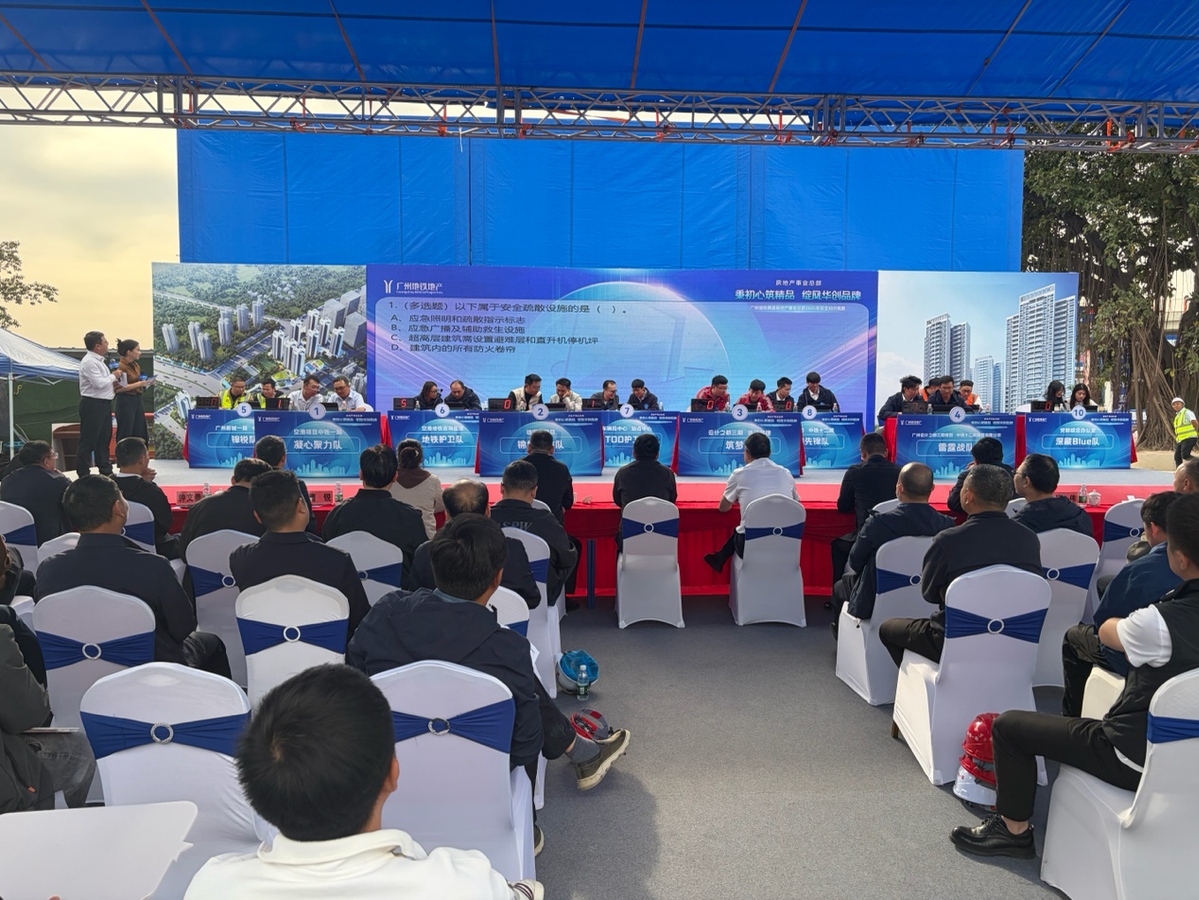 安全知识竞赛环节,来自广州地铁集团房产事业总部在建项目的10支代表队、20名选手同台竞技。竞赛设置必答题、抢答题、团队题、风险题及场外观众答题五个环节,试题涵盖安全生产法律法规、安全施工作业规范、房建施工应急处置、事故防范措施及安全常识等核心内容,全面检验参赛人员对安全生产知识和施工规范的掌握程度,以“以赛促学、以赛促训、以赛促能”的形式,推动安全生产理念入脑入心。此次竞赛既是对参建队伍专业能力的集中检阅,更有效强化了全员安全责任意识,提升了风险应对与隐患处置能力。