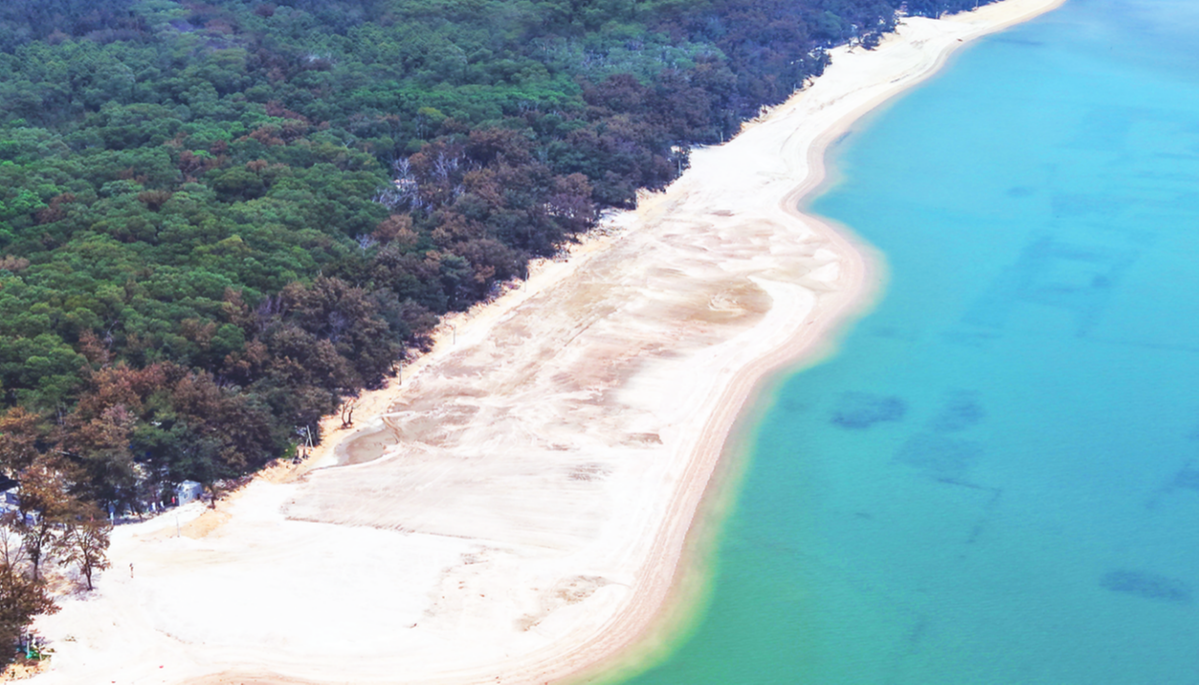 根据施工设计,项目将退养还湿面积达96.6公顷 ,修复砂质海滩面积约28.3公顷,整治入海口面积3.2公顷,红树林种植约9.5公顷,牡蛎礁构建约3.5公顷,同时对堤身进行外来入侵植物治理及本土植被修复,全面提升海域的生态服务功能。