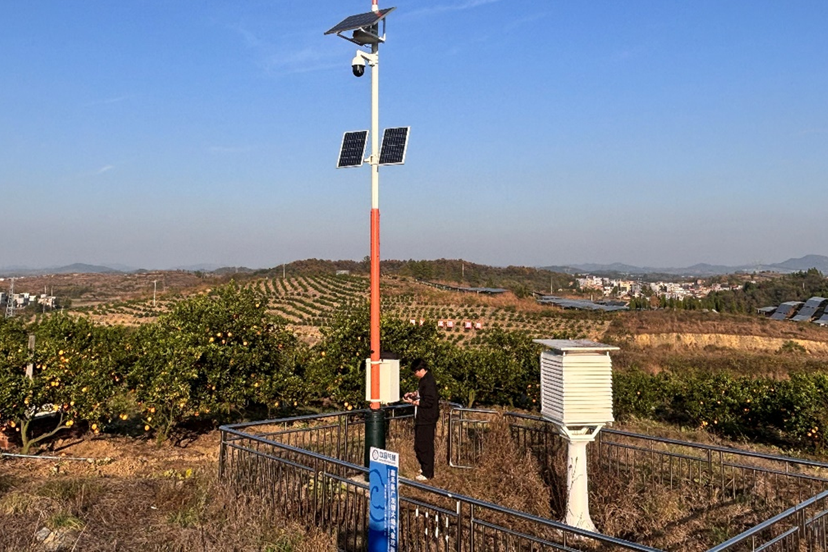 气象服务不止于预报预警,更延伸到田间监测的“最后一公里”。服务团队对果园内的自动气象观测站开展全面巡检与维护,这座集温度、湿度、降水量等要素实时监测与数据回传功能于一体的观测站,如同果园的“千里眼”“顺风耳”,为精准气象研判、科学农事决策提供了坚实的数据支撑,使果农从“看天吃饭”转化为“知天而作”。