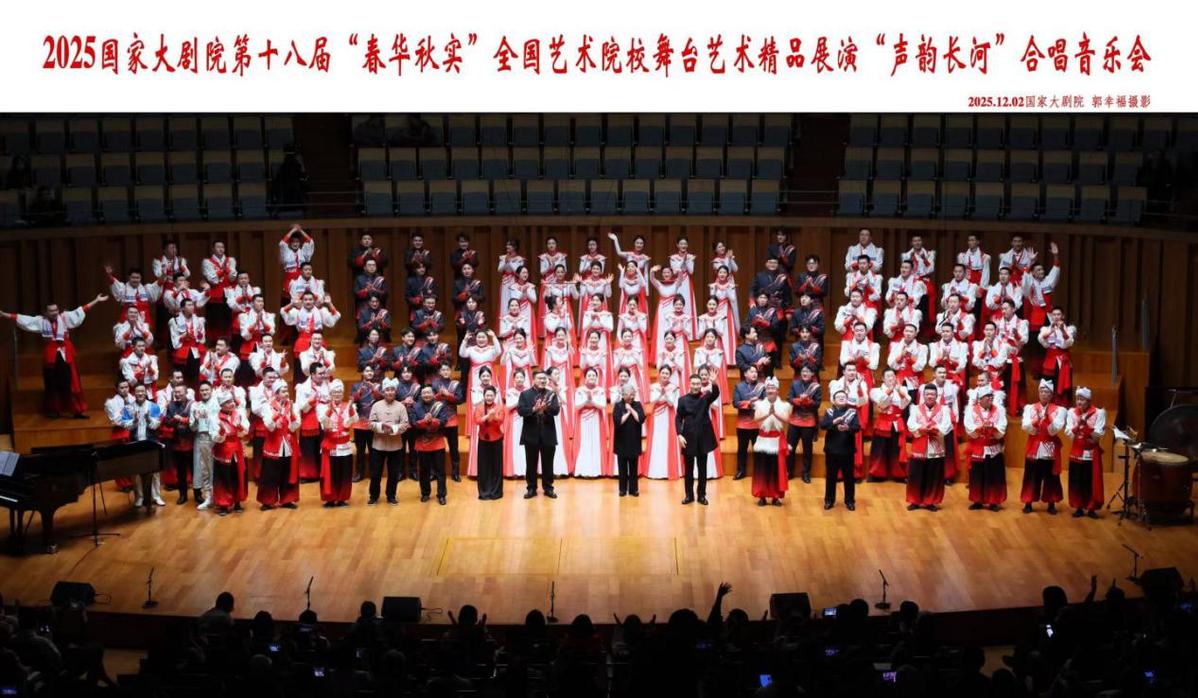12月2日晚,宁夏师范大学“灵瑞之声”合唱团以“声韵长河”专场合唱音乐会的形式,亮相2025年国家大剧院第十八届“春华秋实”全国艺术院校舞台艺术精品展演。