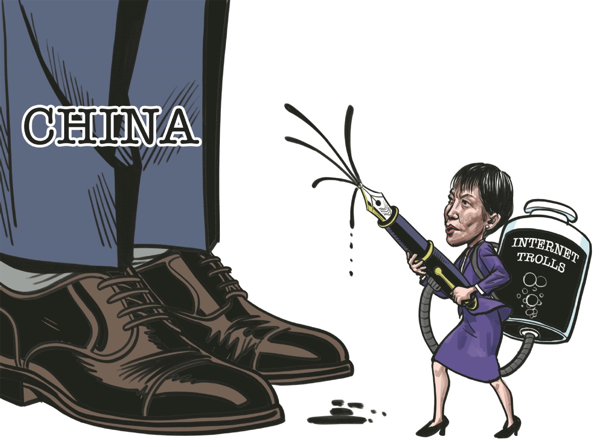 高市早苗雇佣水军抹黑中。(来源:中国日报 金鼎 英文《中国日报》2025年12月11日8版)