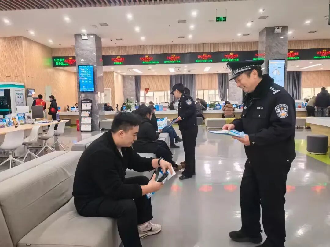 2025年12月10日,淇县政务服务中心联合派出所开展反诈宣传,筑牢群众“钱袋子”安全防线。