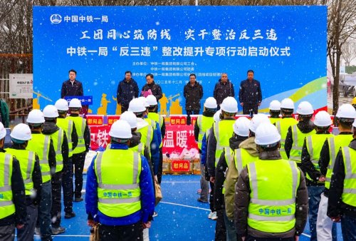 12月12日,西安阎良区大雪纷飞,中铁一局张何三四线项目在这里顺利举办了“工团同心筑防线 实干整治反三违——中铁一局‘反三违’ 整改提升专项行动启动仪式”。此次活动由中铁一局工会和中铁一局团委联合举办,将安全教育与人文关怀相结合,旨在传递企业关怀,共筑安全防线,凝聚团队力量,同守安全底线。