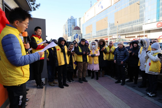 香坊区环卫局相关工作负责人刘勇、哈尔滨代表处2025-2026年度主任杨砚秋、第二副主任许武成、党支部副书记李秋、副秘书长兼十协筹备委员会主席李忠、社区服务项目主席杜晓光、环保委员会主席王旭臣,以及30余位狮友代表、20余名环卫工人代表共同见证这一温暖时刻。