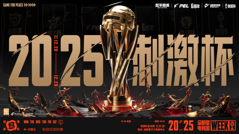 作为和平精英的年终顶级竞技赛事,“刺激杯”将邀请涵盖PEL、PEN、全国大赛冠军、全民赛冠军、城市赛冠军以及主播队伍在内的32支队伍参与,上演从职业、次级到大众“全生态”精英力量的同台对决。比赛赛程分三个阶段:12月20日至21日,16支PEL队伍和3支PEN队伍将在突围赛中展开首轮角逐;12月22日至23日,未直接晋级队伍进入抢位赛,与全民赛冠军队伍和城市赛冠军队伍争夺通往最终决赛的有限名额;12月27日至28日,顶尖战队集结总决赛,向唯一冠军宝座和独享200万冠军奖金发起最后冲击。