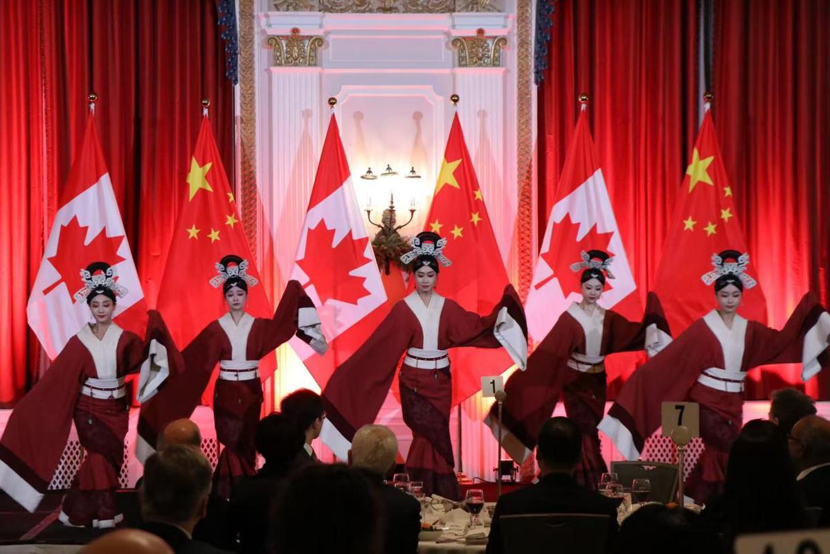 招待会现场气氛热烈、友好,来宾们高度赞赏中国发展成就,期待中加关系焕发新活力。