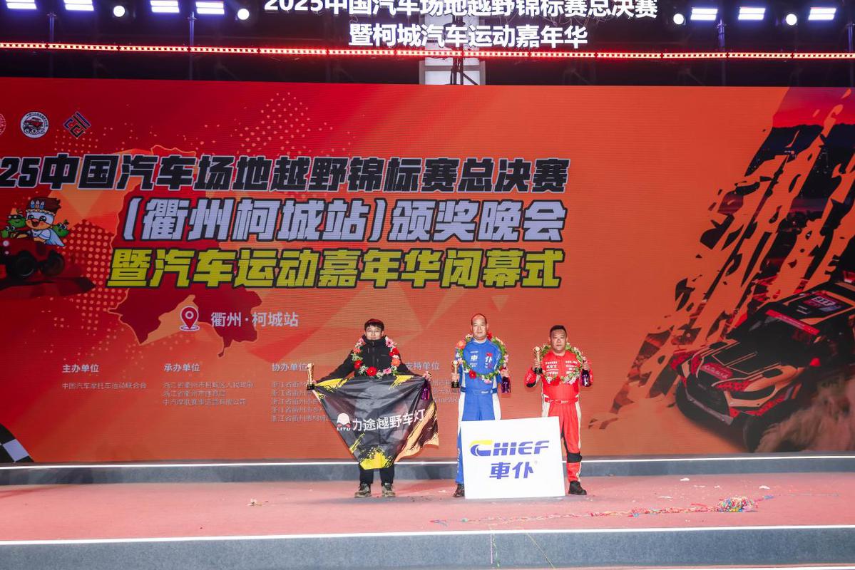 12月21日,2025中国汽车场地越野锦标赛总决赛(衢州柯城站)暨汽车运动嘉年华活动迎来激动人心的决赛日。经过前几日的比拼,各组别强手蓄势待发,在柯城区九华乡汽车赛场展开最激烈的终极争夺。最终,DN多耐减振器车队的范高翔凭借出色发挥荣膺汽车组冠军,队友区志斌夺得汽车组“飞车王”;车仆车队的赵福强获得UTV组冠军,“飞车王”则由CFMOTO春风动力车队的杜炫义夺得。