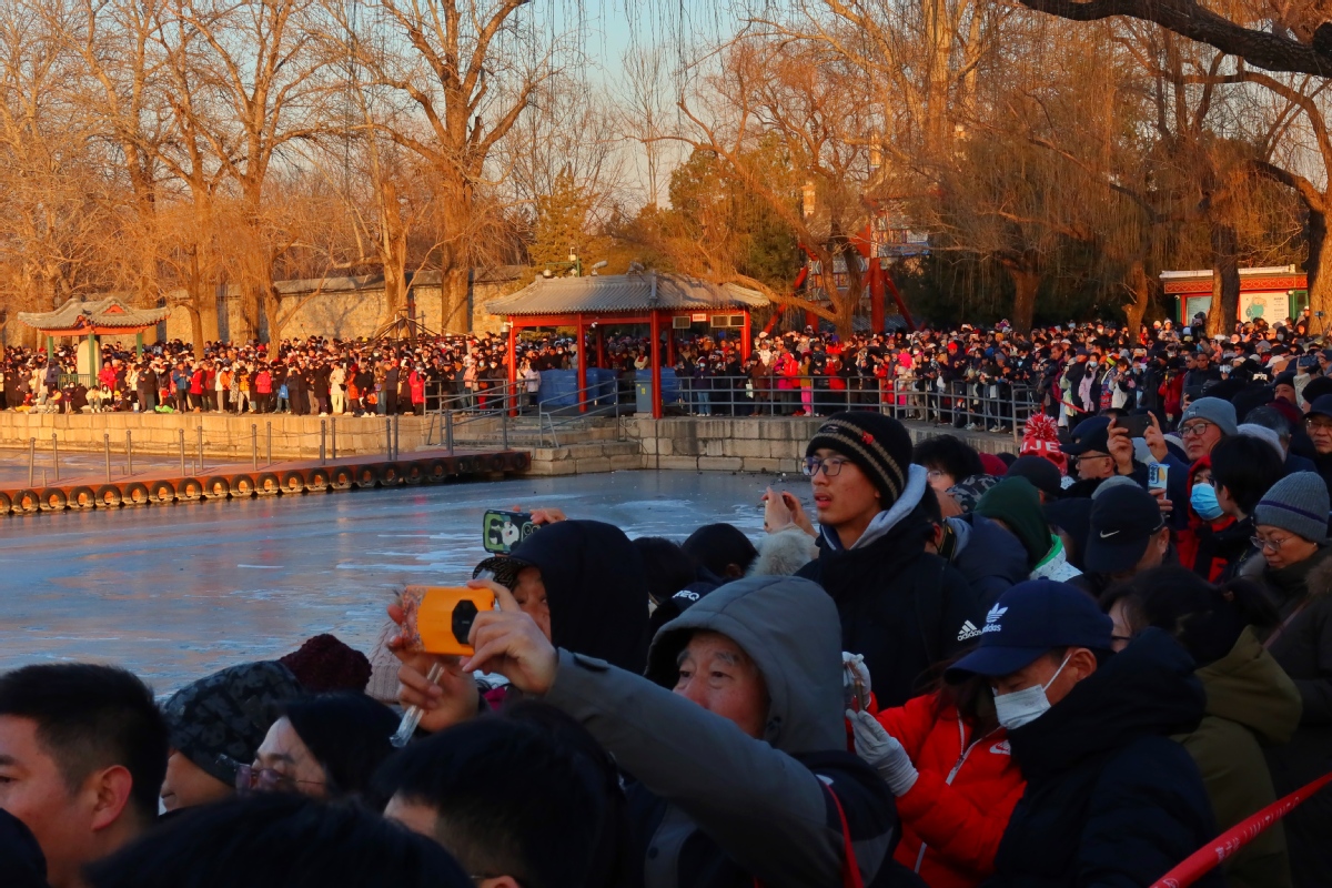 中国日报12月22日电(记者 姜东)2025年12月21日是冬至节气,北京颐和园十七孔桥的“金光穿洞”景观吸引了众多游客与摄影爱好者观赏拍摄。