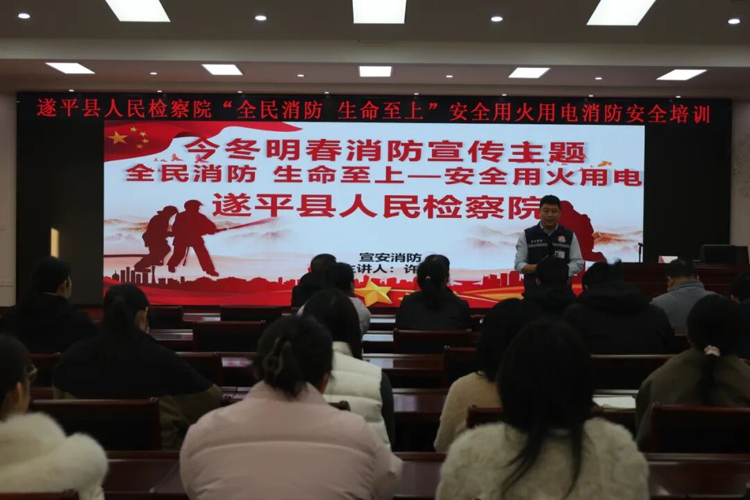 为切实筑牢消防安全防线,提升全院干警消防安全意识和应急处置能力,12月5日,遂平县检察院邀请宣安消防教官开展以“全民消防 生命至上”为主题的消防安全培训,全体干警参加了此次培训。