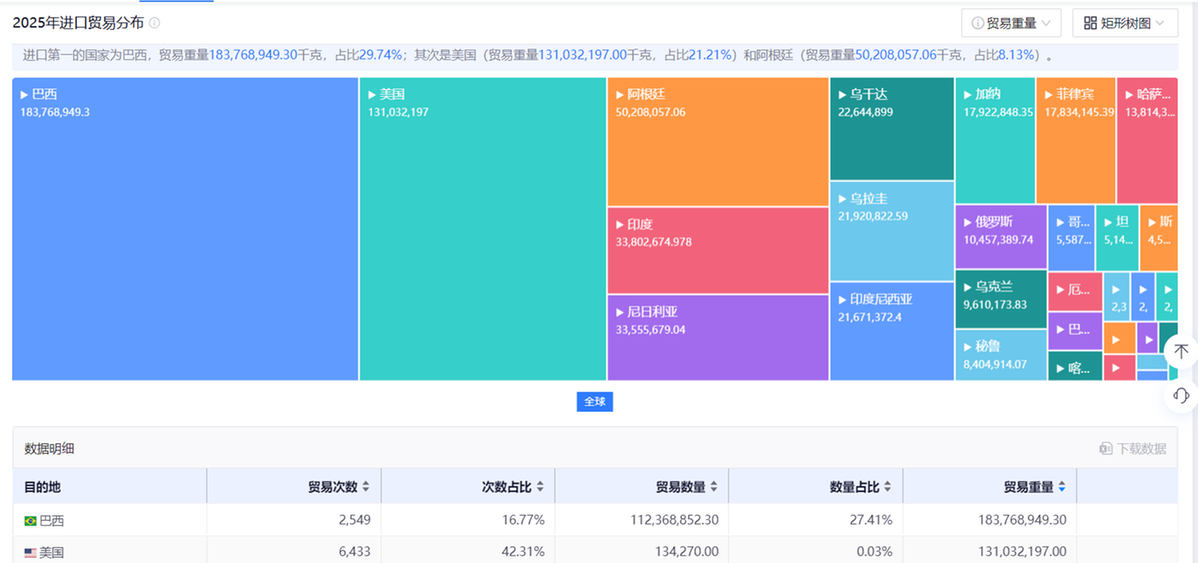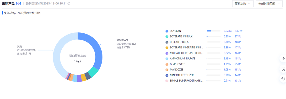 某除草剂头部企业通过“智能分析市场”功能,抓取全球农化数据:巴西大豆主产区因杂草对传统除草剂产生抗性,低毒复配型除草剂的市场搜索量3个月内上涨72%,且当地农业部门刚放宽该类产品的进口登记时效,由此锁定巴西为高价值增量市场。同时,筛选出巴西某覆盖12万公顷大豆田的农业合作社——该合作社上一种植季因除草剂效果不佳减产,近期正发布新季采购询盘,同步获取到对方采购负责人联系方式后精准进行客户开发。