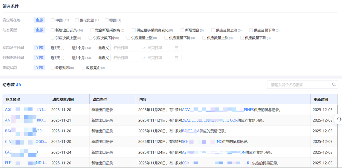 随时监测竞企:分析竞品的客户资源、供应链布局、采购记录,帮企业找到市场切入时机,实现“知己知彼”;