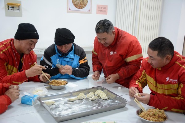 活动上,“三越书会”书友兰兰向大家详细介绍了基础设施分公司的发展历程和品质工程,以及“三越书会”成立背景。书会书友们通过分享《中国工人》与《工会博览》杂志的版面图片,生动呈现了工会组织在维护劳动者权益、传递组织温暖方面的积极作为。参与活动的快递小哥接力诵读外卖诗人王计兵诗歌作品《所有的离别都暗含忧伤》,成为一次有深度、有温度、有态度的精神交汇。在民俗体验环节,大家通过趣味问答普及冬至小知识,“三越书会”的书友们与外卖小哥分组协作包饺子,让大家在动手实践中感受传统文化魅力,也将团圆期盼包进面皮。