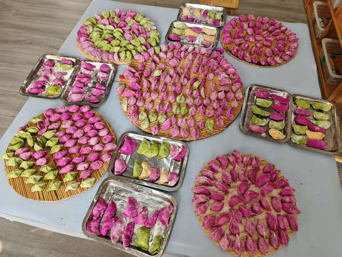 紧随其后的“品冬至——舌尖上的冬日甜蜜”环节,将活动推向高潮。各班化身为趣味盎然的“美食工坊”,孩子们在老师的指导下,兴致勃勃地动手制作传统美食。搓汤圆、包饺子,孩子们忙得不亦乐乎,在揉、捏、搓、团的过程中,不仅锻炼了手部精细动作,更真切体会到了劳动与分享的快乐。当一碗碗热气腾腾的汤圆和饺子端上桌时,孩子们品尝着自己的劳动成果,脸上洋溢着满足与幸福的笑容,冬日的甜蜜与温暖在舌尖与心间流淌。