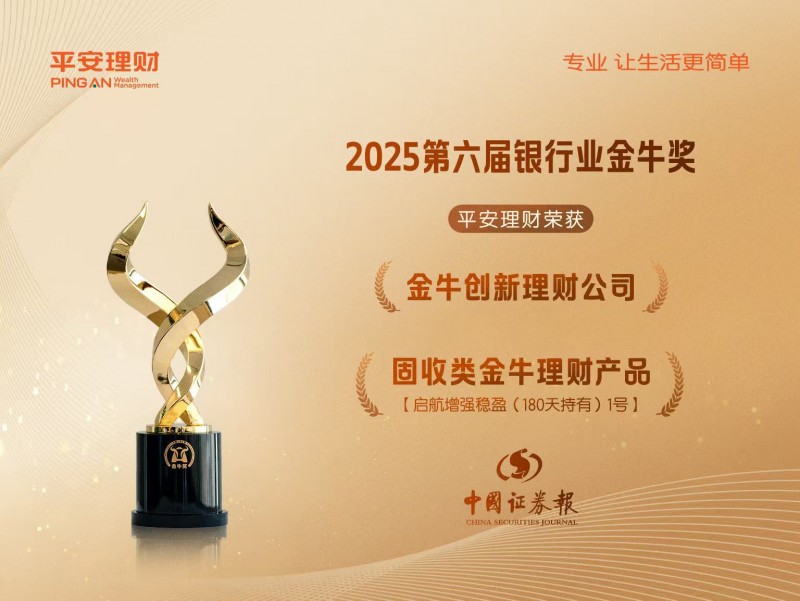 12月19日,由《中国证券报》主办的“2025财富配置与资产管理大会”暨“第六届银行业金牛奖”颁奖典礼在深圳举办。凭借着专业精进的投研能力、富有竞争力的产品矩阵、持续迭代的数字科技等优势,平安理财荣获“金牛创新理财公司”,旗下“启航增强稳盈(180天持有)1号”摘得“固收类金牛理财产品”荣誉。