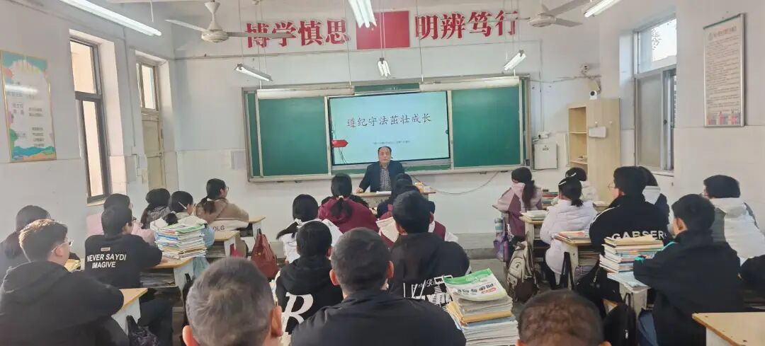 法治课上,陈富贵通过大量生动鲜活的案例为同学们详细介绍了与未成年人犯罪相关的法律规定,结合常见的未成年人违法行为可能触犯《刑法》、《民法》和《治安管理处罚法》等相关内容,深入剖析犯罪成因、危害以及法律后果,引导同学们要树立正确的法治观念,增强自我保护意识,学会用法律武器维护自身合法权益,教育同学们要敬畏法律、遵守法律,自觉远离违法犯罪。