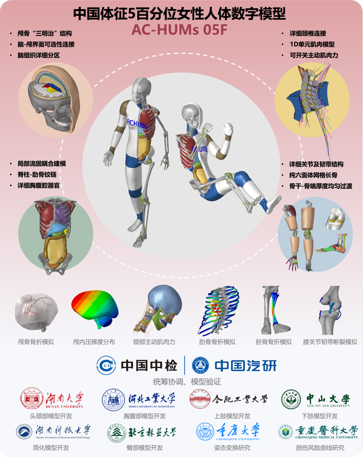 1、数据来源:完全基于中国人体数据正向开发。模型测量学、解剖学、材料力学参数完全来自中国人体,实现“中国数据定义中国模型”。