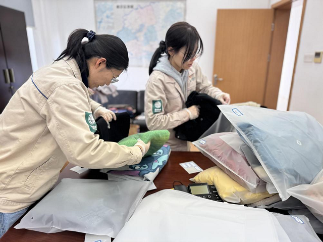 “这件羽绒服还很新,孩子穿着一定暖和。”在嘉定供电公司的捐赠整理现场,两位身着工装的工作人员仔细检查着每件衣物,确保它们整洁完好。这些衣物经过清洗、消毒和整理,分门别类装入透明的塑料袋中,粉色、蓝色、黄色的冬装堆叠在一起,形成了一道温暖的风景线。