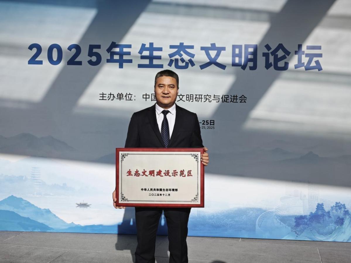 12月25日,在2025年生态文明论坛现场,宁夏永宁县被授予“国家生态文明建设示范区”奖牌。凭借生态保护与发展协同推进的突出成效,这座曾面临生态困境的县城,成功实现从“常警示”到“示范区”的深度蝶变。