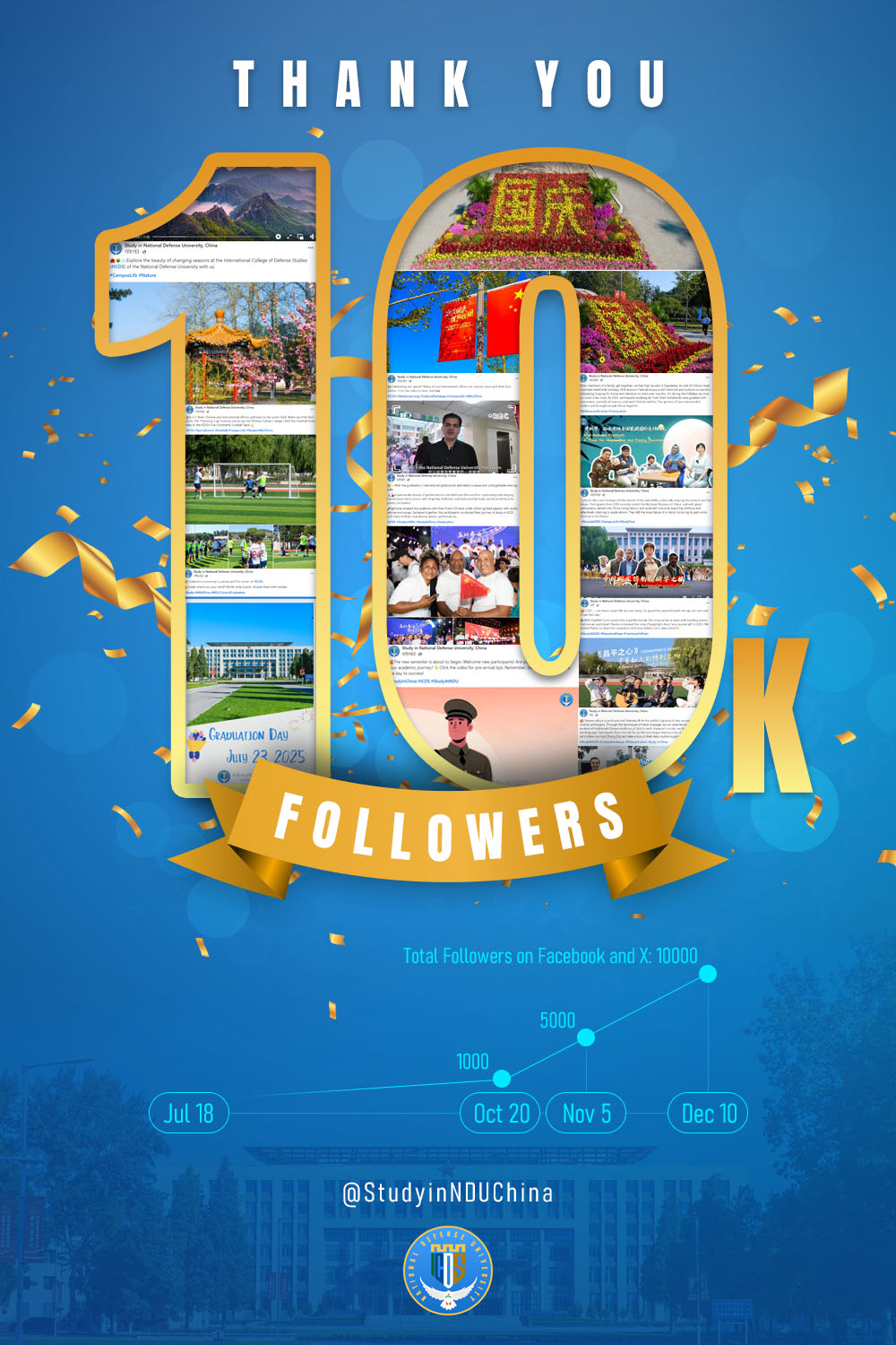 近日,国防大学国际防务学院开设的海外账号“留学中国国防大学”(@StudyinNDUChina)迎来了第10000名全球粉丝,Facebook、X平台内容总浏览量达6600000!