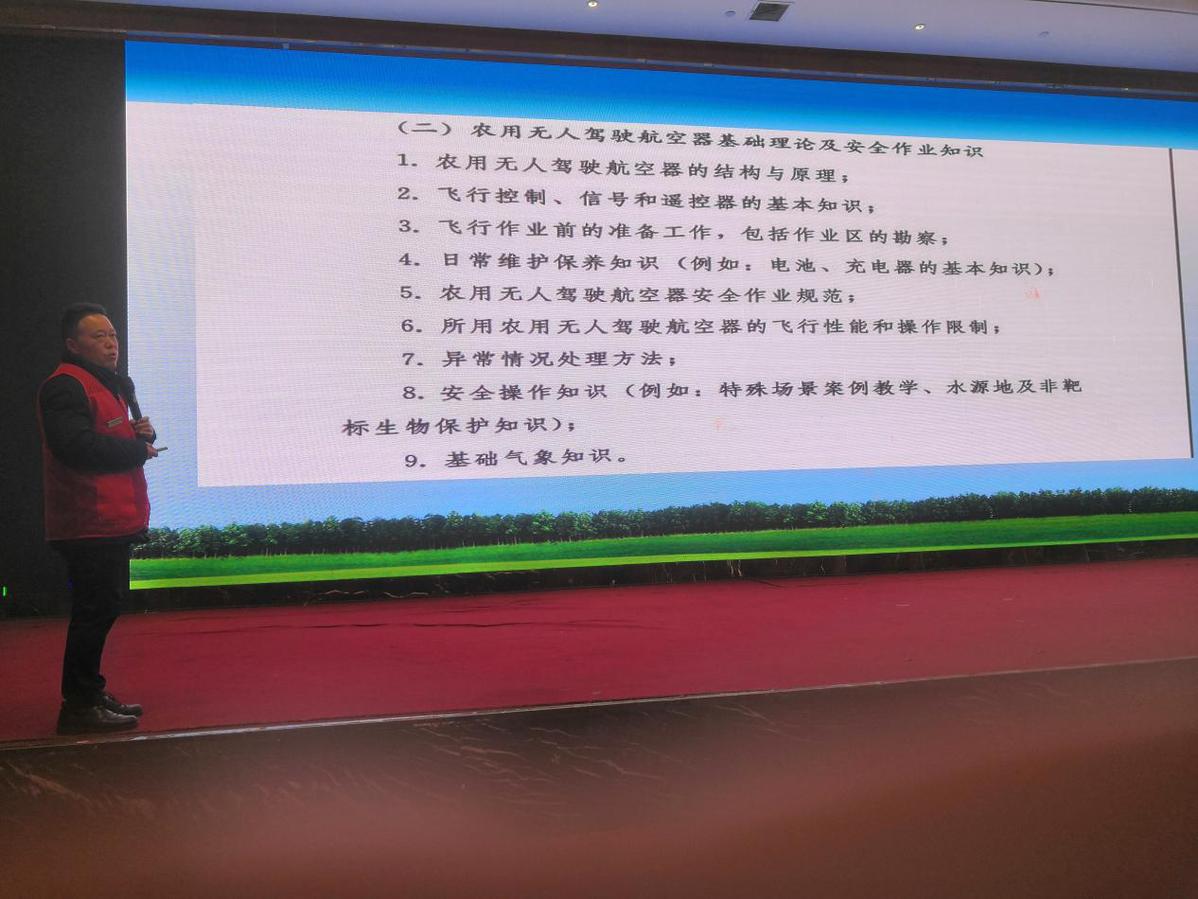 培训会上,南阳市科技特派员、新野县农业农村局高级农艺师张涛进行授课,张涛从“低空经济”的发展、植保无人机立法发展情况、植保无人机驾驶员资格证考取、农用无人驾驶航空器安全作业管理指引、植保无人机类型、飞行技术和指标参数方面进行了系统讲解。