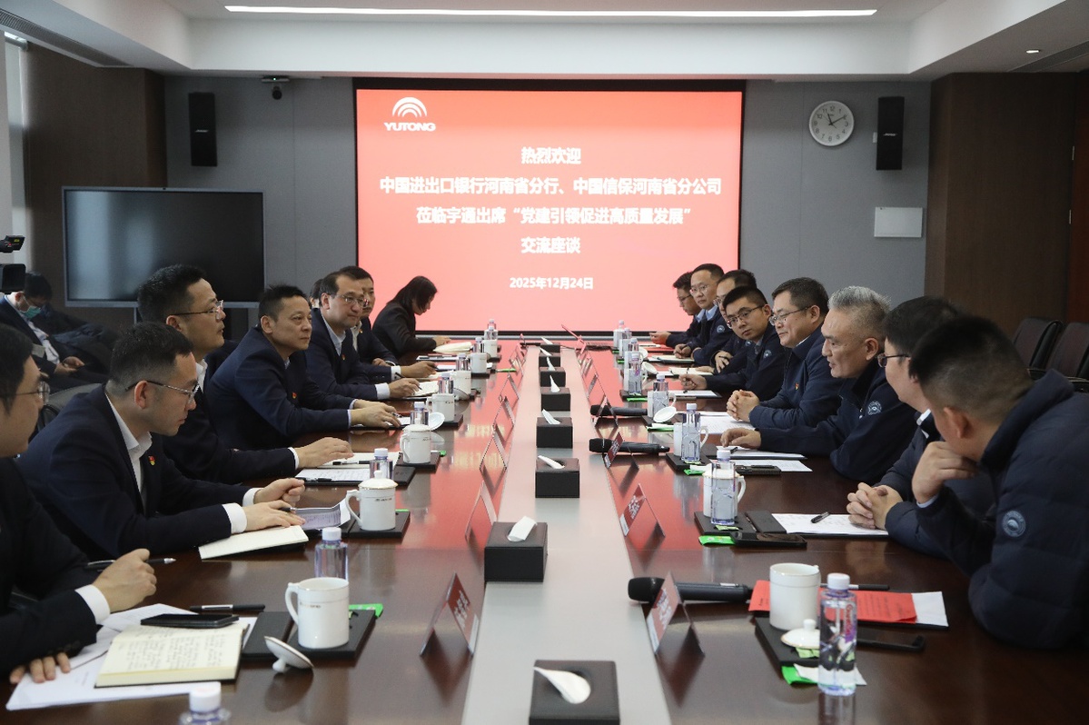 近日,中国进出口银行河南省分行联合中国信保河南分公司走进宇通集团,共同开展“党建引领促进高质量发展”联学联建主题党日暨座谈交流活动。三方以党建为纽带、以合作为抓手,共话支持实体经济发展、服务高水平对外开放与制造业转型升级的新路径。