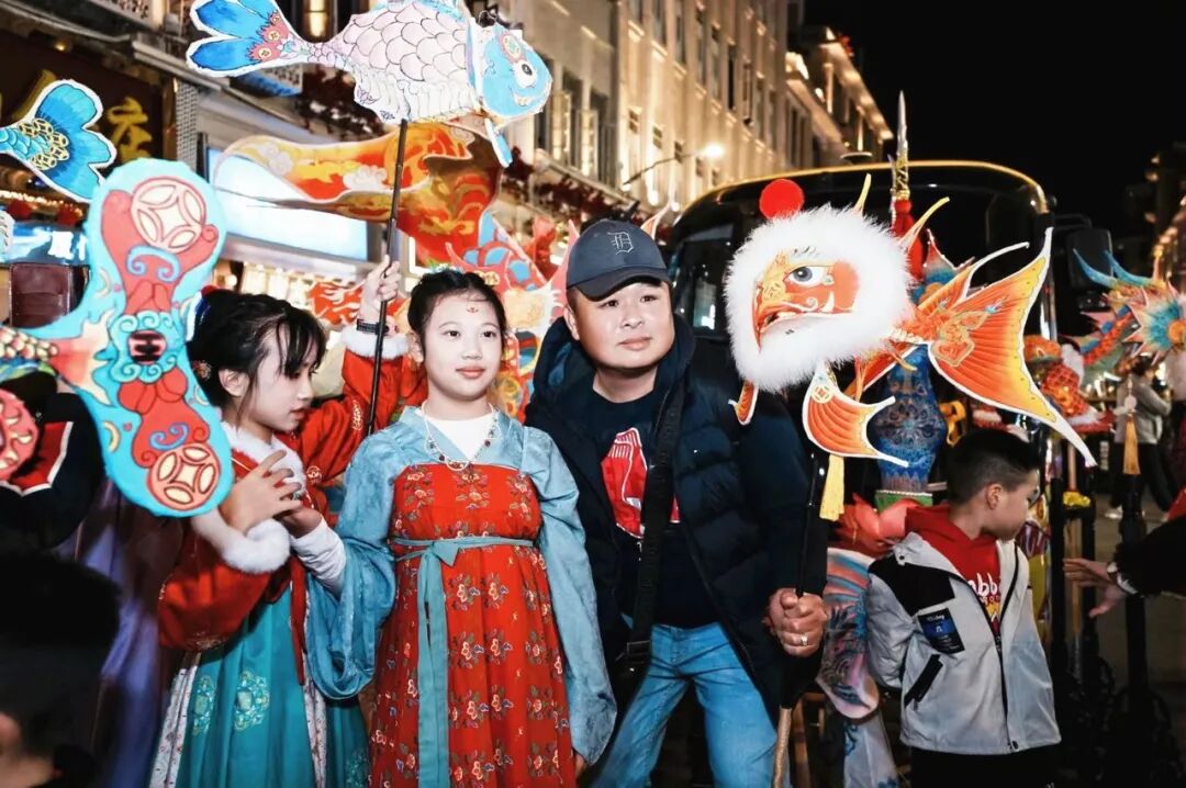浙江游客赵俪今一家五口奔着中山路而来,现场氛围让她感叹,“不枉此行,在这么有历史韵味的老街迎新,仪式感十足。”