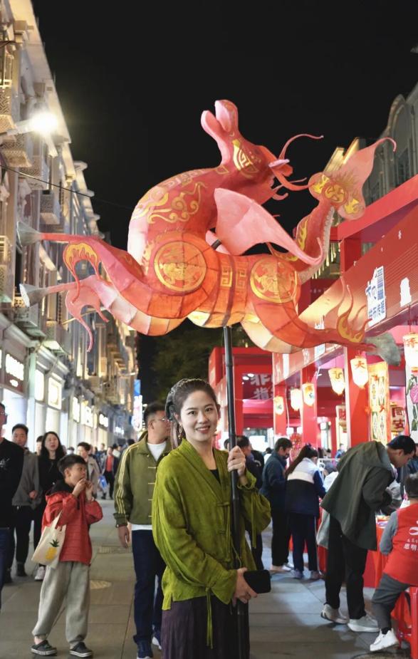 元旦当天,中山路主街锣鼓喧天,迎新巡游表演火热开场——舞龙舞狮、东南亚歌舞等精彩上演,一幅流动的多元文化长卷徐徐铺开。江苏游客顾舒仪一路跟随巡游队伍,用手机记录画面,“中山路老街兼具烟火气和文化味,我在这里感受到了城市的人文魅力。”