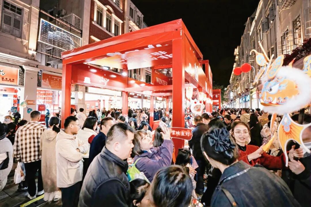 老街嗨购,中山路为迎接厦门新年消费热潮再添一把火。元旦假期,中山路商圈开启“跨年不打烊”活动,推出年终折扣特惠、票根联动兑换等优惠活动。市售时间的延长进一步释放消费潜力,票根联动将“吃住行游购娱”全链条消费串联,激活商圈循环消费。