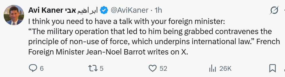 留言区立即有人提醒他,他的属下、法国外交部长在早些时候也发了推文,表示美国的行为践踏了国际法。不过截至本文发稿时间,这位外交部长已然删帖,他的推特没有留下一丝一毫的痕迹。