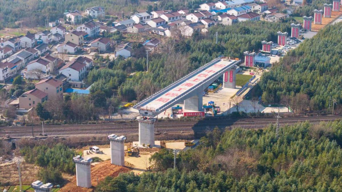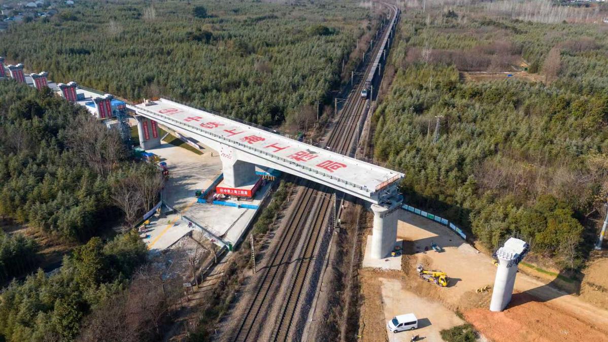 1月7日,从中国铁路上海局集团有限公司获悉,在江苏省南京市浦口区永宁街道东葛村建设现场,新建上海至南京至合肥高速铁路(以下简称沪宁合高铁)南京特大桥建设取得重大突破——总重达6300吨转体梁经过60分钟逆时针旋转60度后,成功跨越京沪铁路运营干线,实现精准转体,为后续箱梁架设打通关键通道。