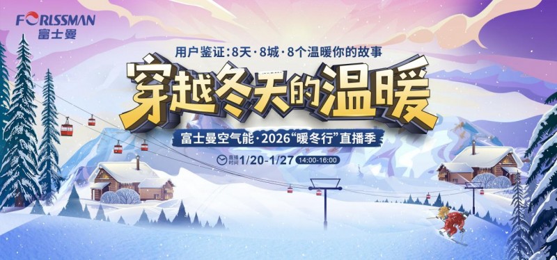 2026年1月20日至1月27日,富士曼空气能将举办“2026‘暖冬行’直播季”活动,8天8城将通过总部与用户连线直播的方式共享8个温暖的故事。