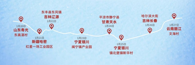 本次“‘暖冬行’直播季”活动将以“穿越冬天的温暖”为主题,覆盖从东部沿海到西部边陲的多元地域,直线距离跨越12000公里。