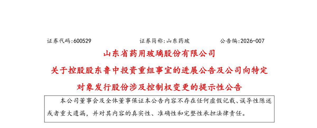 1月14日,山东省药用玻璃股份有限公司(简称山东药玻)发布公告称,拟向国药集团旗下中国国际医药卫生有限公司(简称国药国际)及其全资子公司定向发行股份,国药国际将成为山东药玻控股股东,国药集团成为实际控制人。与此前不同的是,重组方式由通过地方平台公司间接控股变为直接控股山东药玻,控制力、影响力、抗风险能力进一步增强。公告及发行方案显示,募集资金主要用于技术创新研发突破、产业专业化整合、海外布局拓展等,山东药玻综合竞争力有望显著提升,高质量、可持续增长可期。