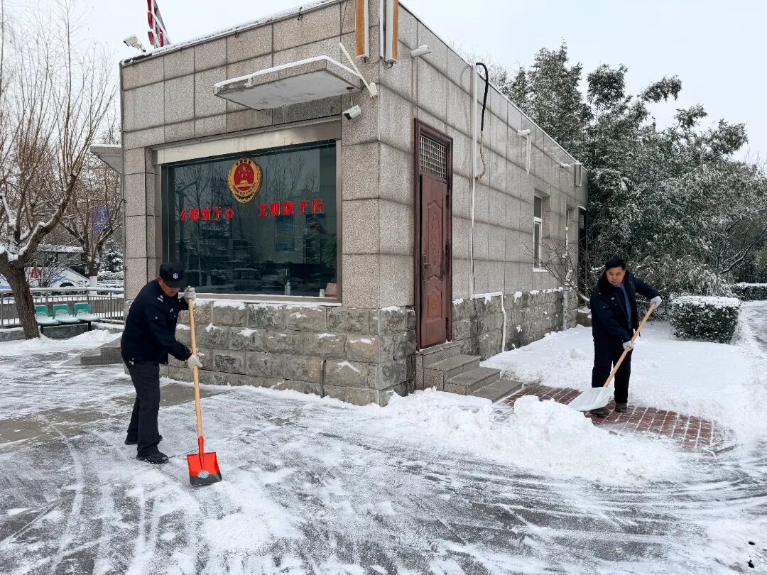 凛冽寒风中,大家不畏严寒,化身“除雪卫士”,一个个热情高涨,手持铁锹、扫帚等工具,分工协作、配合默契,铲的铲、扫的扫,干劲十足。经过全院干警的奋战,院内主干道积雪基本清理完毕,保证了清雪质量和清雪速度,为大家安全出行筑牢了坚实屏障。