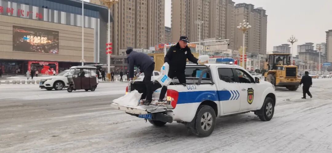 针对城区桥梁、坡道、十字路口等易结冰路段及学校、医院周边等重要区域,工作人员优先开展除雪防滑作业,及时撒布融雪剂,并设置安全提示牌;对主次干道采取“机械化清扫+人工辅助”的作业模式,对背街小巷组织人员逐段清理,严格落实“边下边清、雪停路净”的工作要求。寒风中,他们不畏严寒、坚守岗位,手持铁锹、扫帚,躬身清雪的身影成为雪中最温暖的风景。