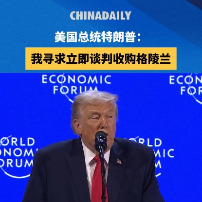 当地时间周三,美国总统特朗普在瑞士达沃斯举办的世界经济论坛年会上发表演讲,再提接管格陵兰岛。他表示,他寻求立即再次开启谈判商讨美国收购事宜,并称:“唯有美国有能力保护这片广袤的土地”。特朗普同时强调,美国无需也不会为此动用武力。(视频 杨怡 郑婉吟)