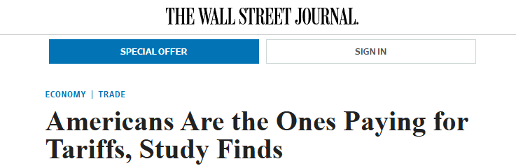 该研究与耶鲁大学预算实验室和哈佛商学院经济学家最近的报告相呼应。报告发现,只有一小部分关税成本是由外国生产商承担的。