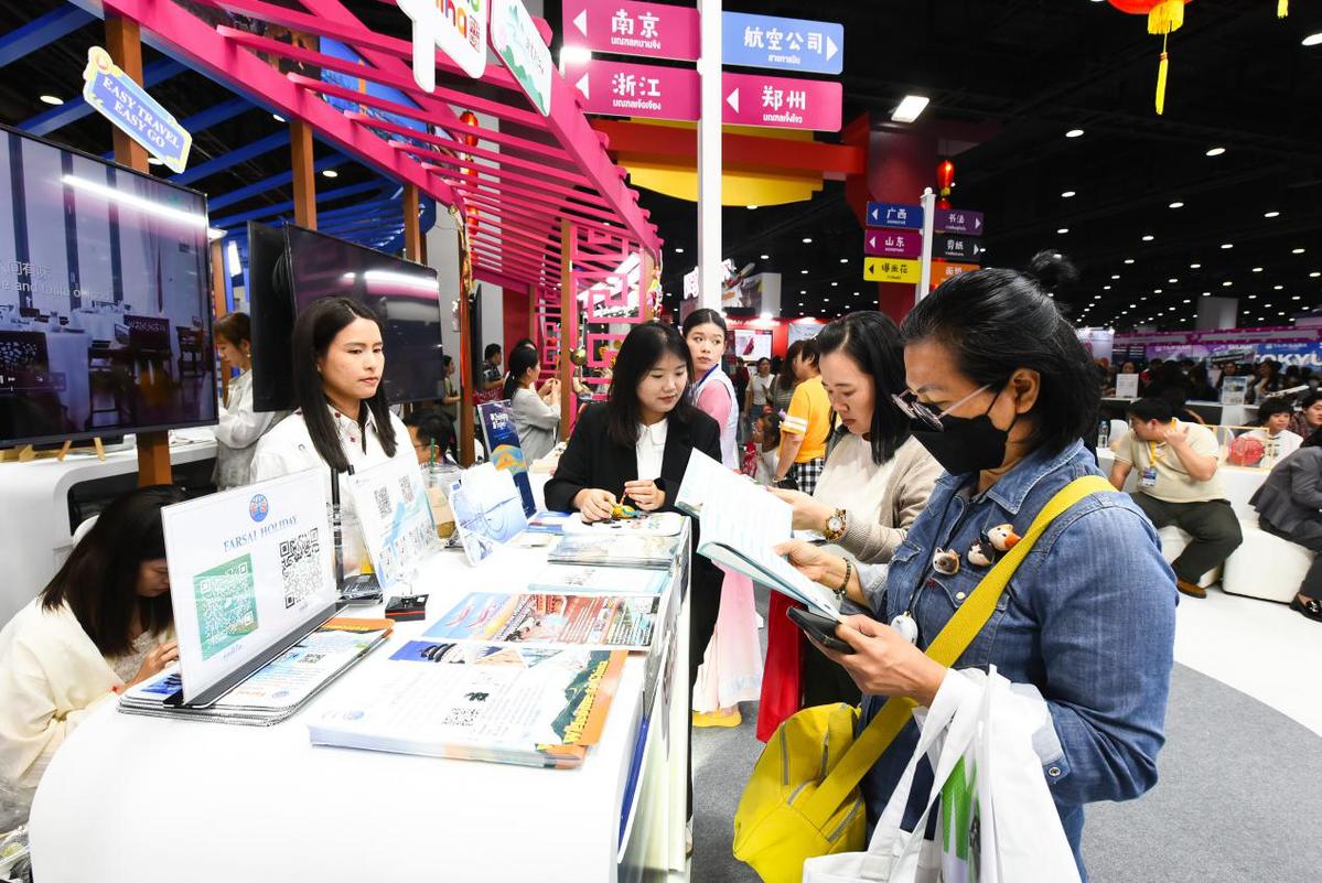 展会开幕首日,驻曼谷旅游办事处组织多家泰国旅行商代表与中国参展企业开展自由洽谈与交流活动。各参展机构还轮番进行文旅资源推介,并提供最新旅游咨询。