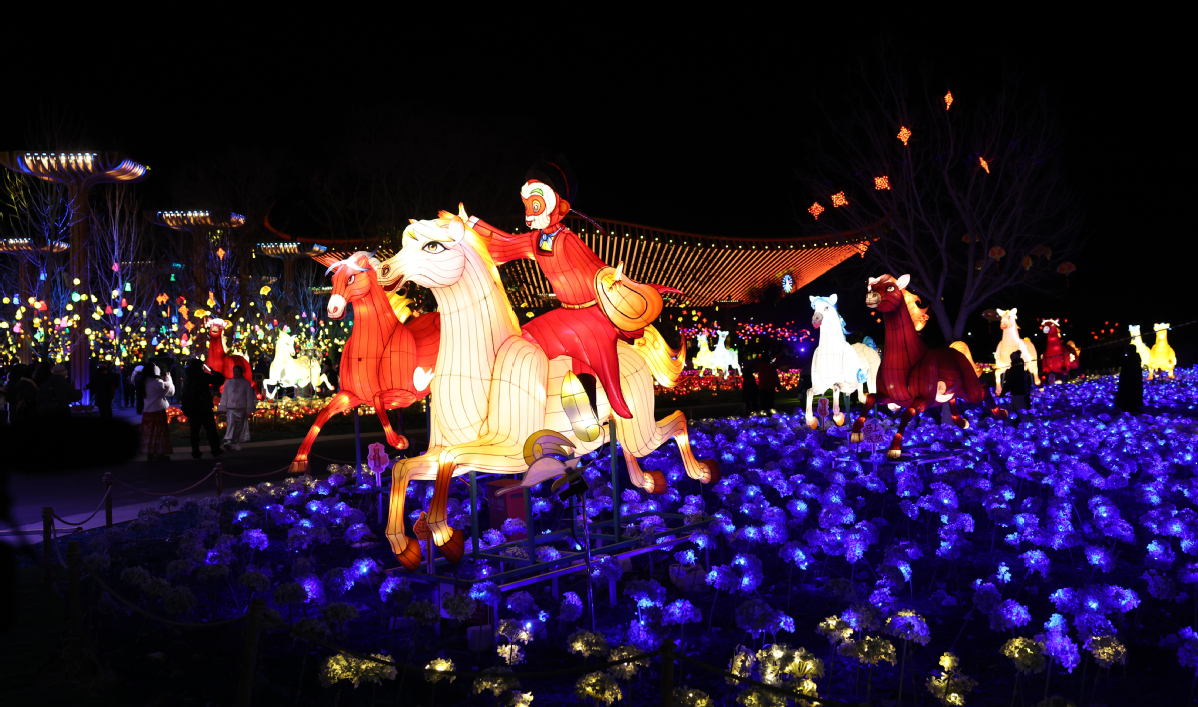 中国日报1月25日电(记者 邹红)2026年1月23日晚,2026年北京世园国际旅游度假区第四届花灯艺术节“天宫灯会”拉开帷幕。50余组以经典动画《大闹天宫》为蓝本的大型花灯、科技光影秀、航天主题特展及系列互动活动同步亮相,为市民游客带来一场冬日文旅盛宴。相关活动将持续至3月8日,历时45天。