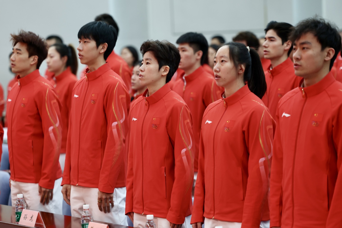 运动员们在大会上合唱国歌。中国日报记者 魏晓昊 摄