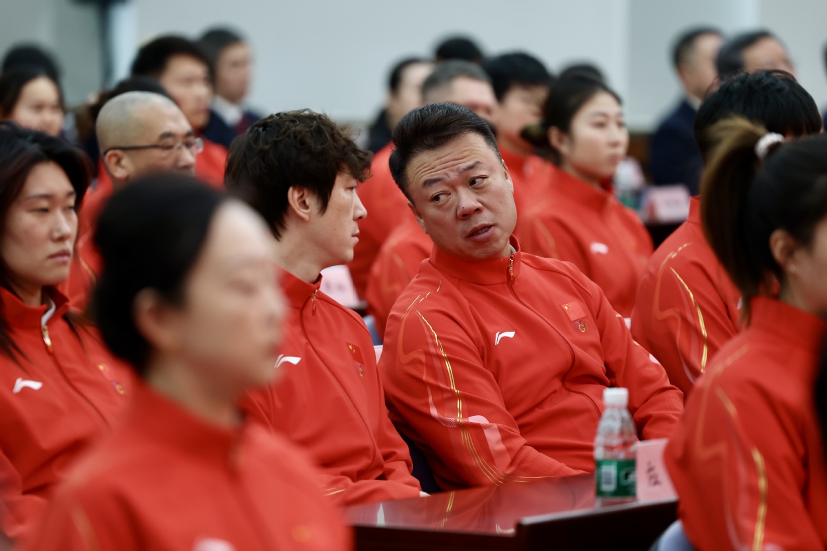 花样滑冰队教练员赵宏博在大会中。中国日报记者 魏晓昊 摄