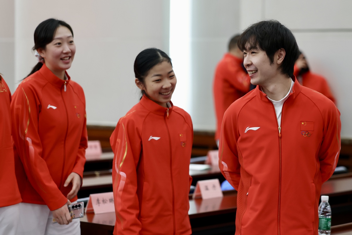 短道速滑队刘少昂(右二)在大会中。中国日报记者 魏晓昊 摄