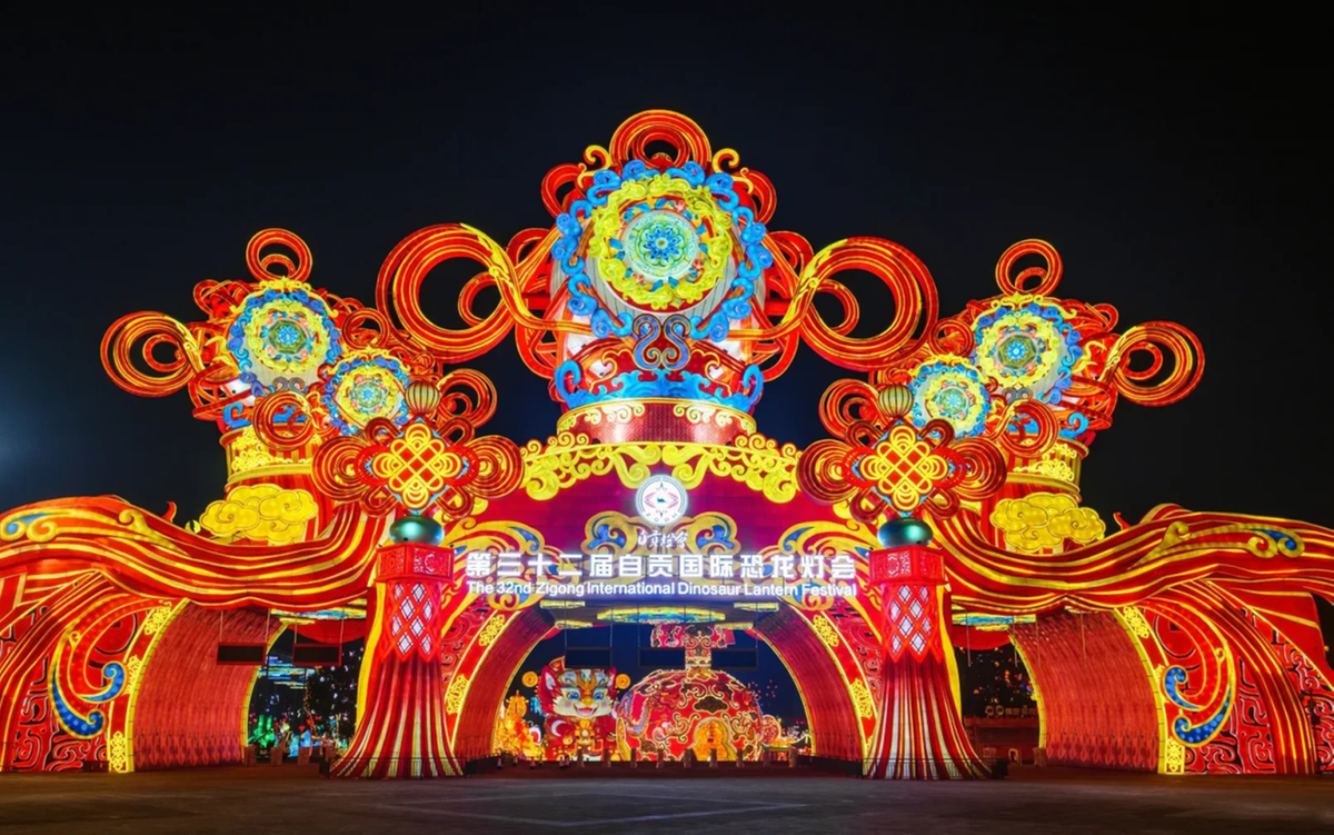 1月23日,第三十二届自贡国际恐龙灯会在中华彩灯大世界正式启幕。本届灯会以"灯绘华夏 筑梦未来"为主题,通过传统技艺与现代科技的融合,打造“中国结大道”“福禄广场”“匠心非遗”“神奇华夏”“创想美灯汇”等十大板块,汇聚11组大型灯组以及200余组中小型灯组,展现中华优秀传统文化的时代魅力,成为全球瞩目的文化焦点。