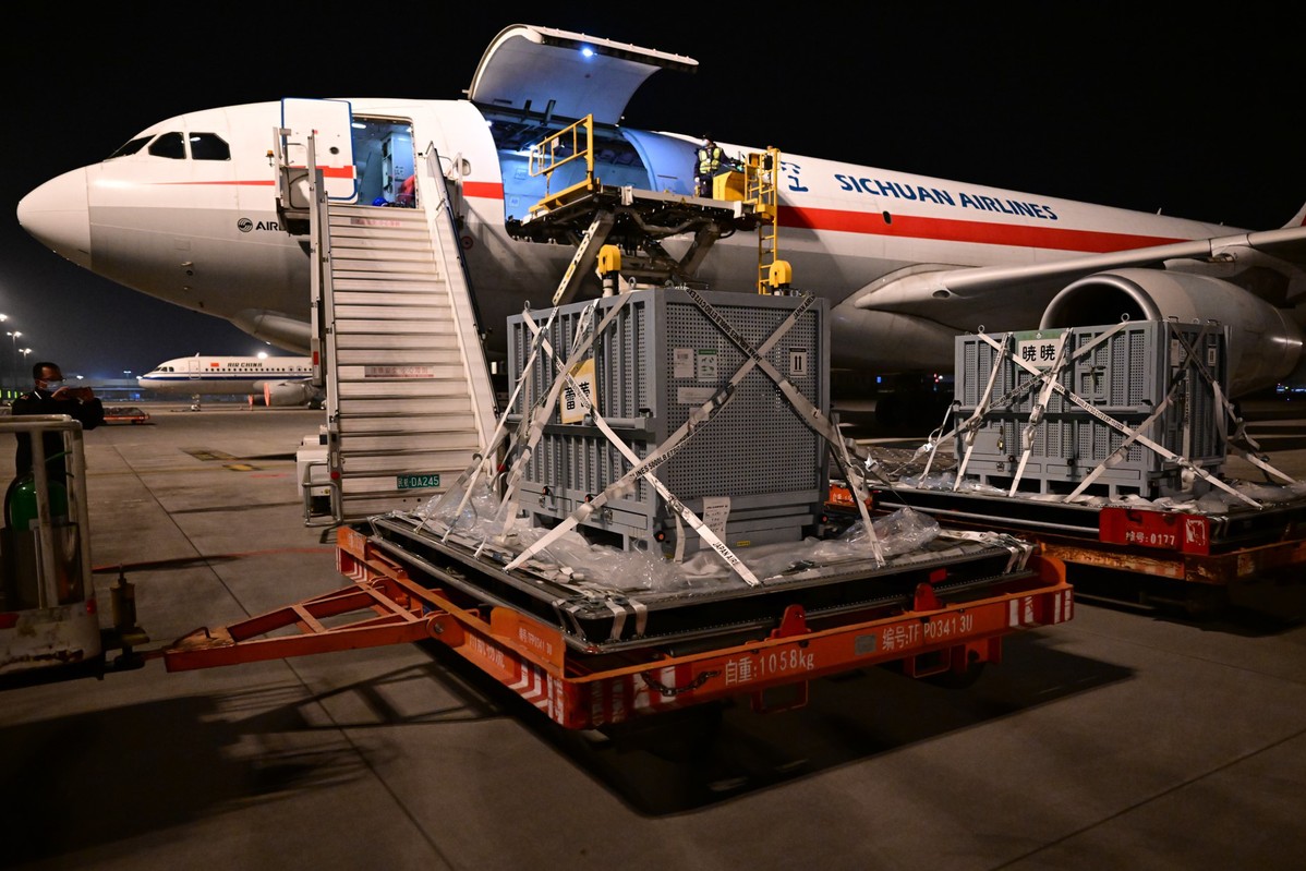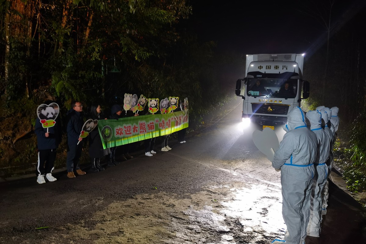 北京时间1月28日1时,我国旅居日本东京都恩赐上野动物园的大熊猫“晓晓”“蕾蕾”平安飞抵成都天府国际机场,随后于6时,顺利入住中国大熊猫保护研究中心雅安基地,接受隔离检疫。