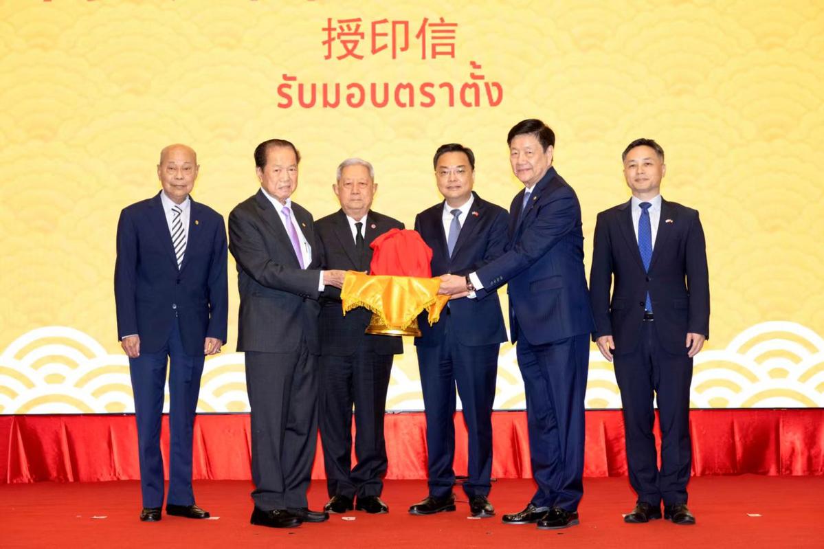 中国日报1月28日电(驻曼谷记者 杨万丽)1月28日上午,泰国中华总商会举办了第三十届会董会就职典礼。泰国枢密院主席素拉育·朱拉暖上将、中华人民共和国驻泰王国特命全权大使张建卫莅临主持仪式并致贺词,与泰国中华总商会永远荣誉主席陈振治、中国驻泰国大使馆吴健公参共同见证大会主席刘锦庭永远荣誉主席授中总印信予林楚钦主席。中泰双方代表、泰国侨团领导及泰国中华总商会荣誉领导和领导会董等500多人出席活动。
