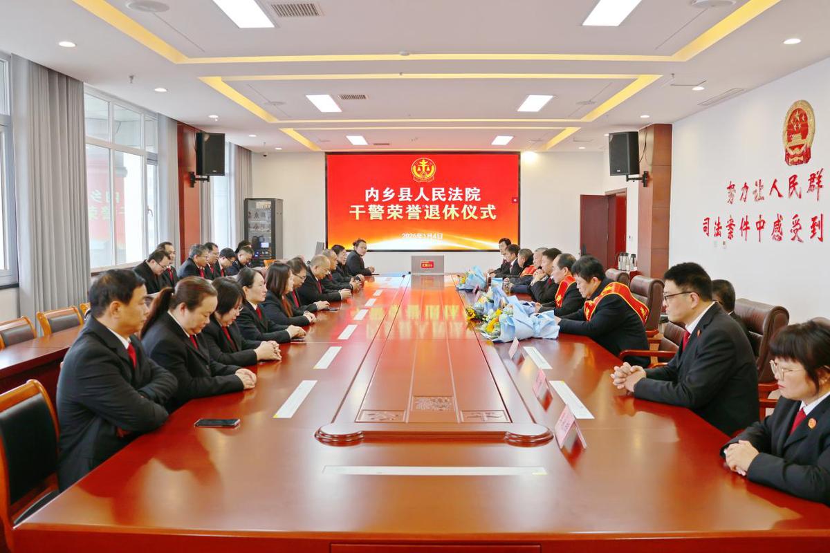 近日,河南省内乡县人民法院干警荣誉退休仪式顺利举行。该院党组书记、院长刘子国出席并讲话,会议由党组成员、政治部主任李智主持,全体领导班子、各部门负责人及干警代表参加。