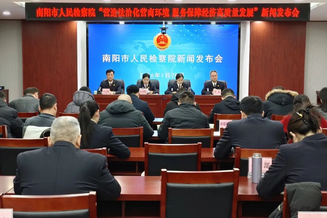 1月28日下午,南阳市检察院召开“营造法治化营商环境服务保障经济高质量发展”新闻发布会,发布《南阳市人民检察院关于服务保障相关工作助力现代化省域副中心城市建设的意见》,通报南阳检察机关营造法治化营商环境的工作情况并发布依法平等保护市场主体优秀案例。